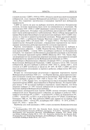 История Веймарской республики, проблемы социально-политических и экономических трансформаций этого периода в контексте падения Веймарской республики и прихода к власти национал-социалистов являются одними из самых востребованных тем в историографии [Кретинин, Шульц 2023a; Кретинин, Шульц 2023б; Шульц 2018].