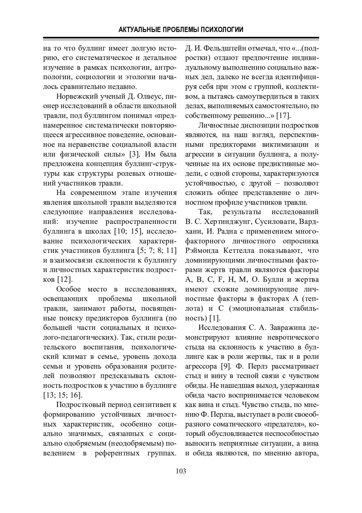 16. Собкин В. С., Смыслова М. М. Буллинг в стенах школы: влияние социокультурного контекста (по материалам кросскультурного исследования) // Социальная психология и общество. 2014. Т. 5. № 2. С. 71 - 86.