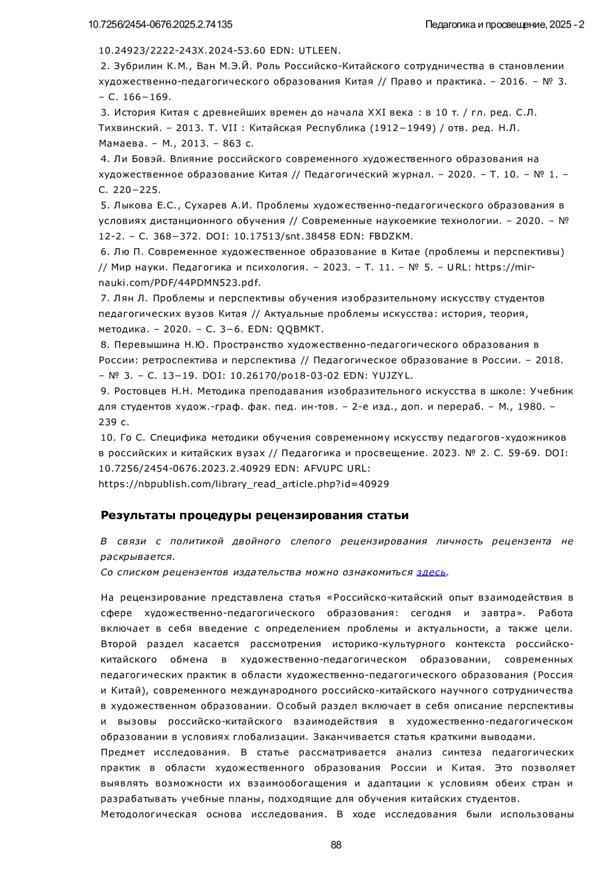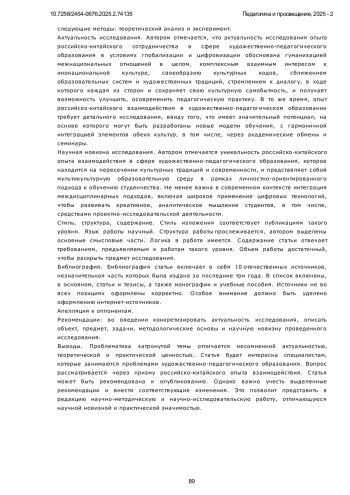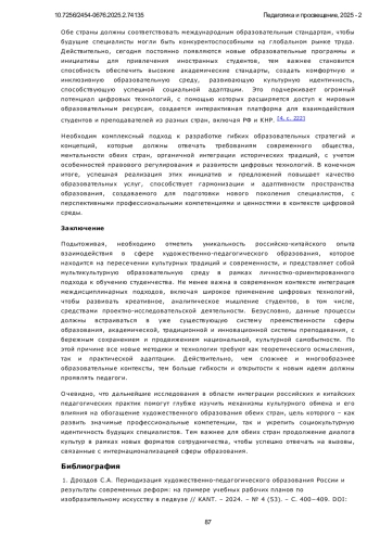 ЧЭНЬ Ю. РОССИЙСКО-КИТАЙСКИЙ ОПЫТ ВЗАИМОДЕЙСТВИЯ В СФЕРЕ ХУДОЖЕСТВЕННО-ПЕДАГОГИЧЕСКОГО ОБРАЗОВАНИЯ: СЕГОДНЯ И ЗАВТРА // ПЕДАГОГИКА И ПРОСВЕЩЕНИЕ. 2025. № 2