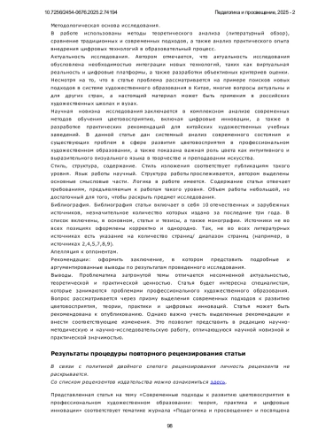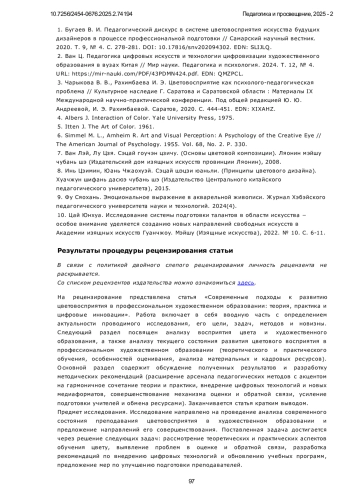 2. Ван Ц. Педагогика цифровых искусств и технологии цифровизации художественного образования в вузах Китая // Мир науки. Педагогика и психология. 2024. Т. 12, № 4. URL: https://mir-nauki.com/PDF/43PDMN424.pdf.