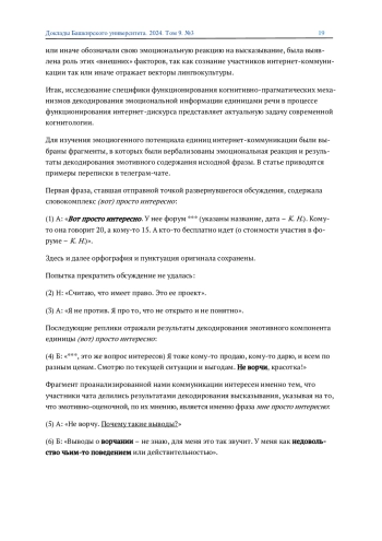 Процесс и результат декодирования эмотивного элемента смыслового содержания высказывания представляет интерес как с позиций эмотивологии (В. И. Шаховский, Л. Г. Бабенко, В. И. Жельвис, Е. Ю. Мягкова, Э. Л. Носенко, Д. А. Романов и др.), в центре внимания которой находятся процессы объективации эмоционально-оценочной сферы, так и с позиции дискурсивной лингвистики (Т. ван Дейк, В. И. Карасик, Н. Ф. Алефиренко и др.), рассматривающей речь как пространство реализации смыслов. В оси координат когнитивной лингвистики важно исследование коннотативнопрагматического потенциала единиц живой речи.