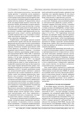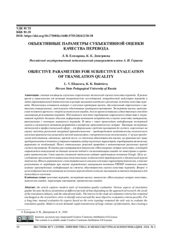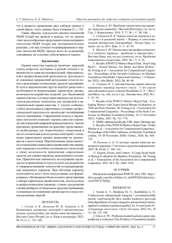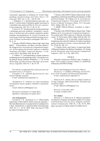Статья: ОБЪЕКТИВНЫЕ ПАРАМЕТРЫ СУБЪЕКТИВНОЙ ОЦЕНКИ КАЧЕСТВА ПЕРЕВОДА (2024)