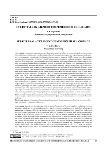 6. Горшкова В. Е. Перевод в кино: монография. Иркутск: ИГЛУ, 2006/2008. 278 с. EDN: RUFWTL