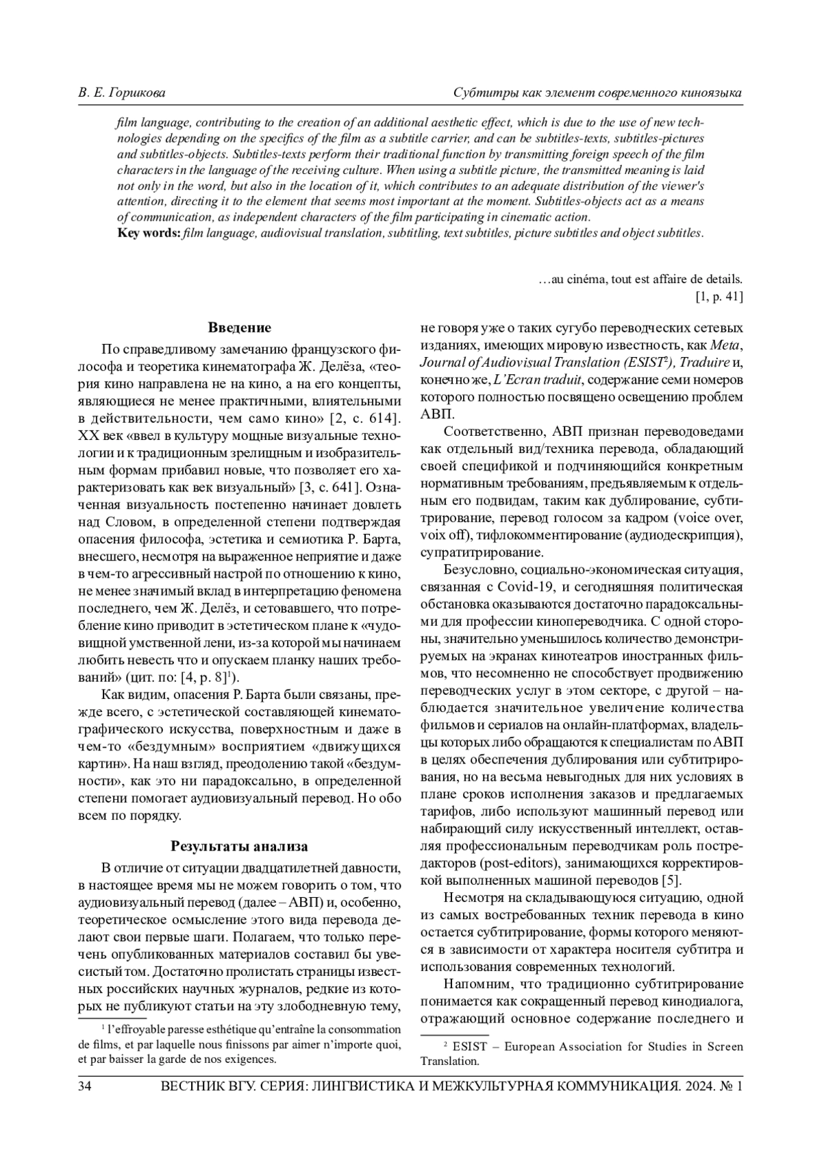 14. Garncarz Joseph. Sous-tittrage, versions multiples, doublage: En quete du mode de traduction optimal // L’Ecran traduit: revue sur la traduction et l’adaptation audiovisuelles. 2013. № 1. P. 34-45.