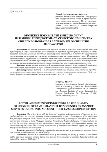 7. Донченко, В.В. Транспортное планирование как инструмент транспортной политики: трансформация подходов / В.В. Донченко Научный вестник автомобильного транспорта – 2023 – № 1 – С. 29–43.