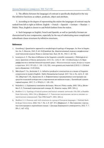 3. Mkrtchyan T. Yu., Borisenko V. A. Infinitive predicative constructions as a means of linguistic compression in modern English // Baltic Humanitarian Journal. 2017. Vol. 6. No. 4(21). P. 128-132. EDN: YKYMPN