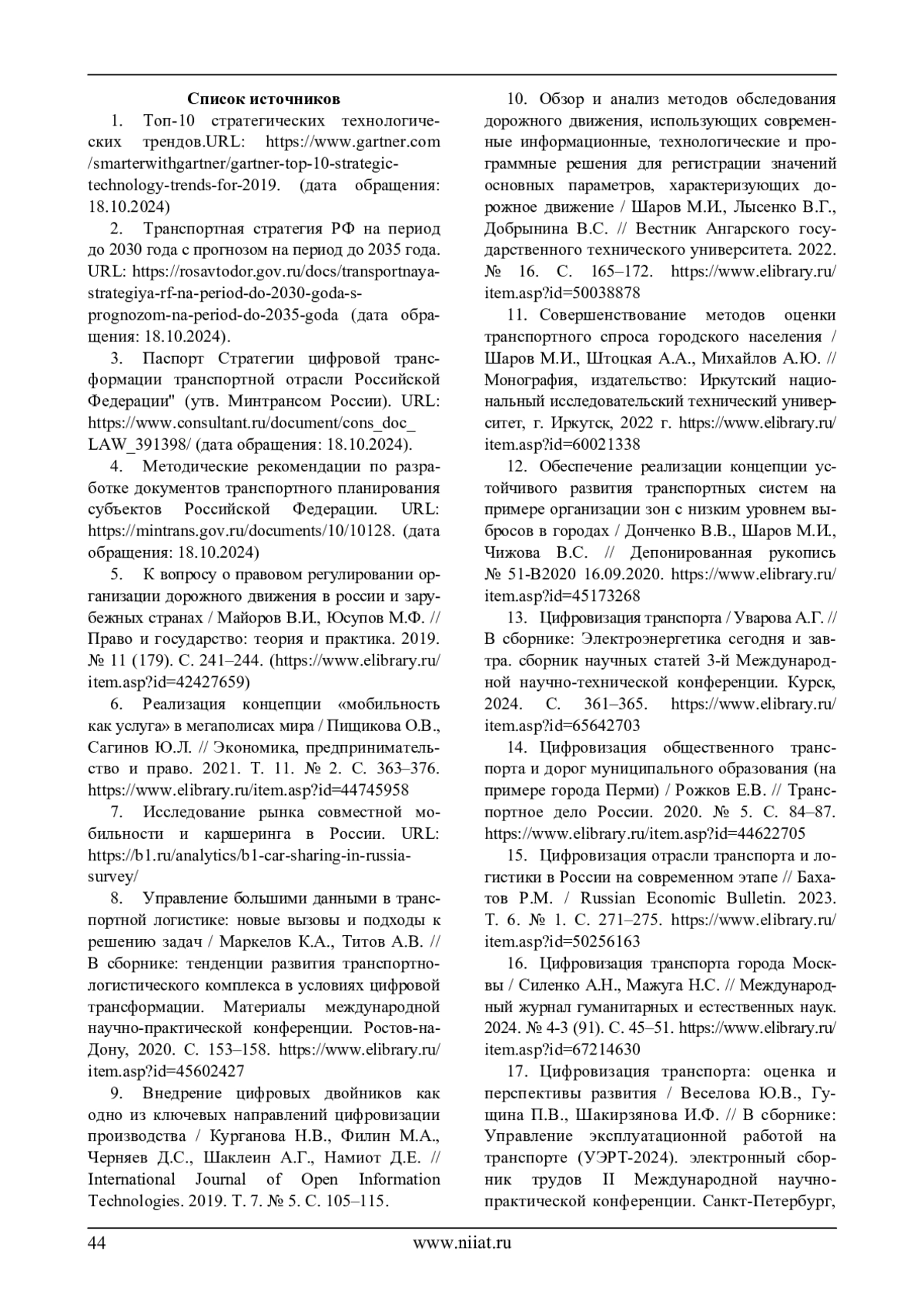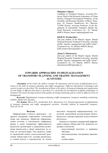 16. Цифровизация транспорта города Москвы / Силенко А.Н., Мажуга Н.С. // Международный журнал гуманитарных и естественных наук. 2024. № 4-3 (91). С. 45–51. https://www.elibrary.ru/ item.asp?id=67214630