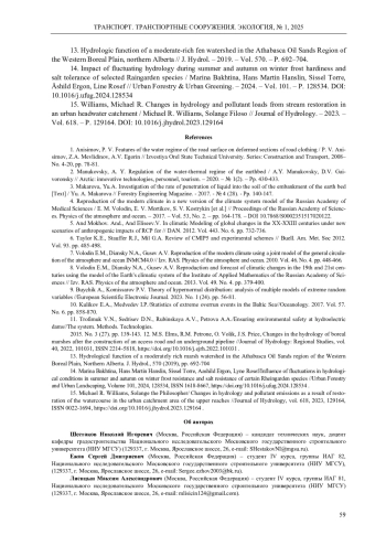 12. Changes to the hydrology of a boreal fen following the placement of an access road and below ground pipeline / M.C. Elmes, R.M. Petrone, O. Volik, J.S. Price // Journal of Hydrology: Regional Studies. - 2022. - Vol. 40. - P. 101031. DOI: 10.1016/j.ejrh.2022.101031 EDN: QPZOJH