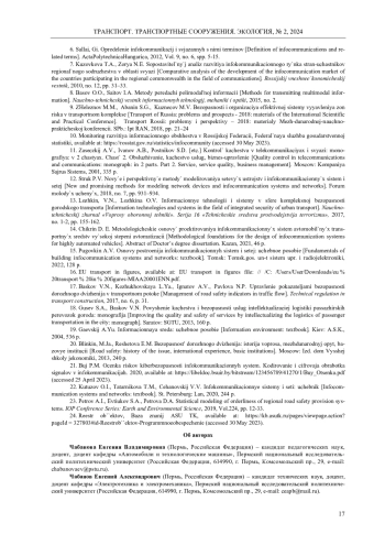 14. Чикрин, Д.Е. Методологические основы проектирования инфокоммуникационных систем автомобильных транспортных средств высокой степени автоматизации: специальность 05.13.01 “Системный анализ, управление и обработка информации (технические системы и связь)”: автореф. дис. … д-ра техн. наук / Чикрин Дмитрий Евгеньевич, Самарский национальный исследовательский университет имени академика С.П. Королева. - Казань, 2021. - 46 с.