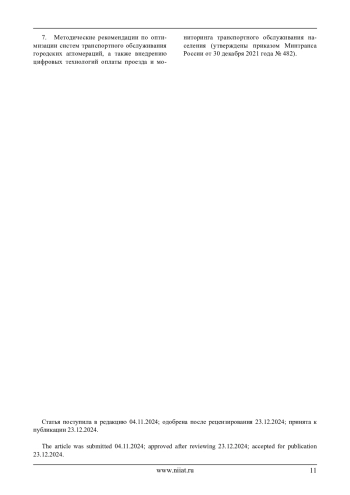 7. Методические рекомендации по оптимизации систем транспортного обслуживания городских агломераций, а также внедрению цифровых технологий оплаты проезда и мониторинга транспортного обслуживания населения (утверждены приказом Минтранса России от 30 декабря 2021 года № 482).