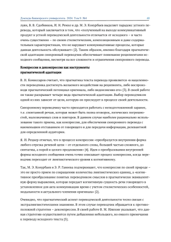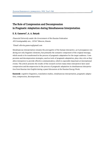 Статья: РОЛЬ КОМПРЕССИИ И ДЕКОМПРЕССИИ В ПРОЦЕССЕ ПРАГМАТИЧЕСКОЙ АДАПТАЦИИ В СИНХРОННОМ ПЕРЕВОДЕ (2024)