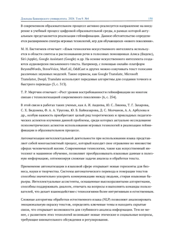 Данная статья посвящена актуальной проблеме изучения автоматизации интеллектуальной деятельности посредством языка игровых технологий и реализации геймификации в образовательном процессе. Авторами детально рассматриваются инструменты применения автоматизации в языковой сфере и алгоритмы обработки естественного языка (NLP), которые позволяют анализировать эмоциональную окраску текстов, определять ключевые темы и находить скрытые связи, что открывает возможности для глубинного анализа информации. Обосновывается междисциплинарный подход к изучению языка игровых технологий. В заключении делается вывод о необходимости разработки психометрических оценок геймификационных решений в образовании в качестве актуальной и важной стратегией выработки современных ценностей, смыслов, интеллектуальных задач и результатов творческого решения проблемных (игровых) задач в обучении.
