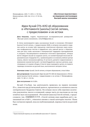 Статья: Идеи Ку: кай (774-835) об образовании в «Регламенте [школы] Сюгэй сютиин, с предисловием» и их истоки (2025)