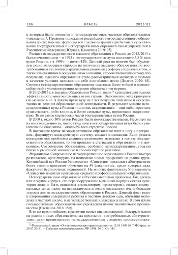 3. Панкина С.Н. 2018. Особенности современного этапа развития негосударственного высшего образования. - Экономические и социально-гуманитарные исследования. № 2(18). С. 122-131. EDN: XRGPSH