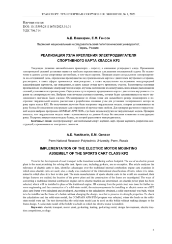 ВАШКАРИН А. Д., ГЕНСОН Е. М. РЕАЛИЗАЦИЯ УЗЛА КРЕПЛЕНИЯ ЭЛЕКТРОДВИГАТЕЛЯ СПОРТИВНОГО КАРТА КЛАССА KF2 // ТРАНСПОРТ. ТРАНСПОРТНЫЕ СООРУЖЕНИЯ. ЭКОЛОГИЯ. 2023. № 1