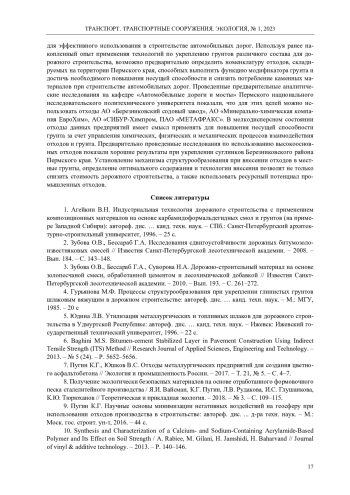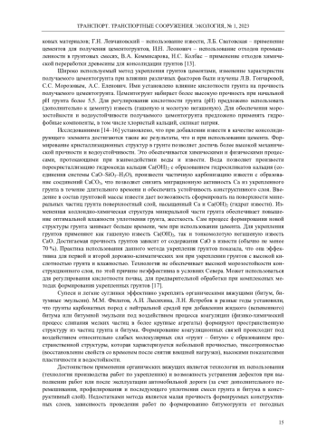 Статья: УЛУЧШЕНИЕ ХАРАКТЕРИСТИК ГРУНТОВ, ИСПОЛЬЗУЕМЫХ ДЛЯ ДОРОЖНОГО СТРОИТЕЛЬСТВА (2023)