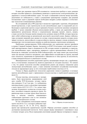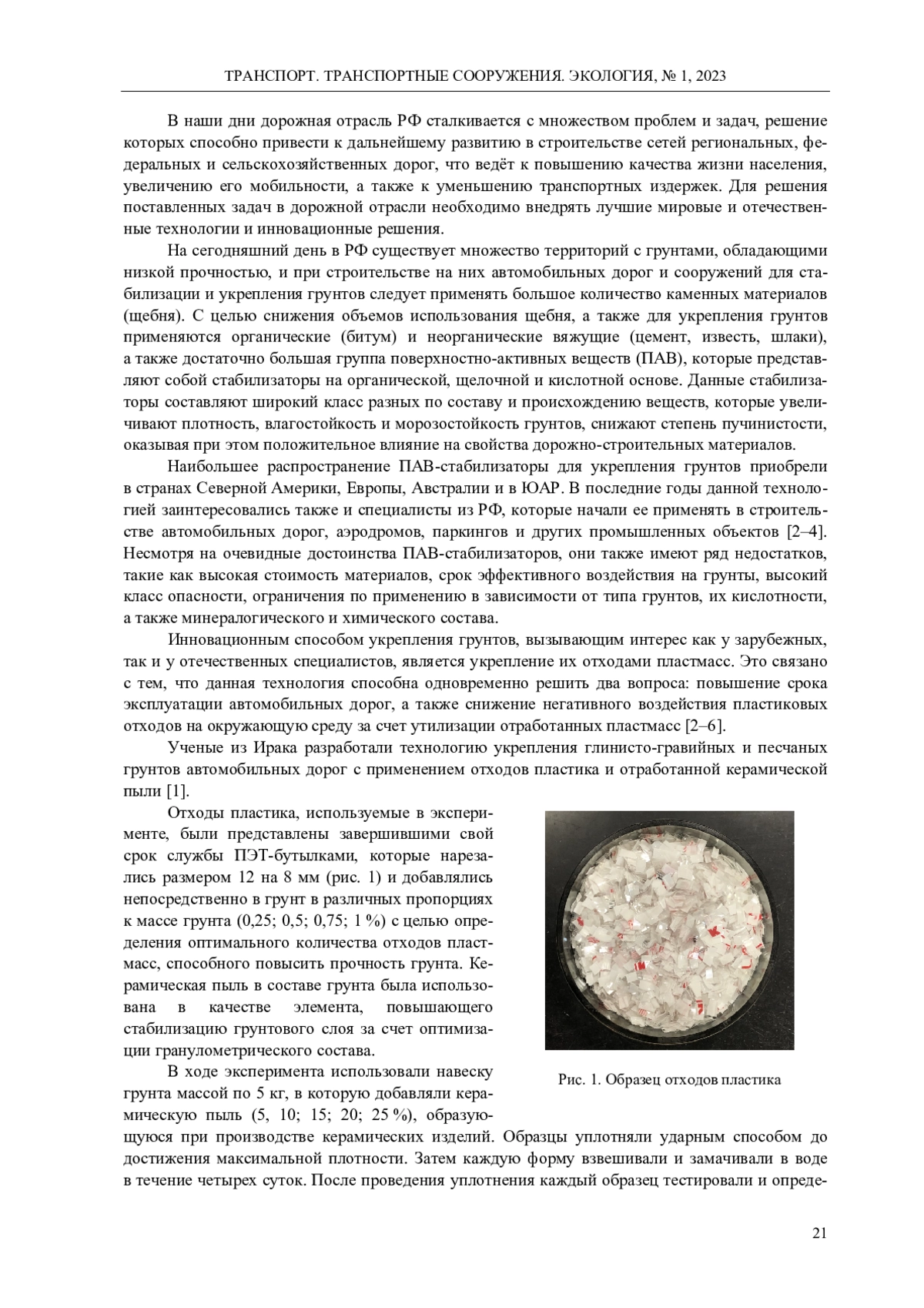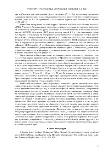 Статья: УКРЕПЛЕНИЕ ГРУНТОВ, ИСПОЛЬЗУЕМЫХ ДЛЯ СТРОИТЕЛЬСТВА АВТОМОБИЛЬНЫХ ДОРОГ, ОТХОДАМИ ПЛАСТИКА (2023)