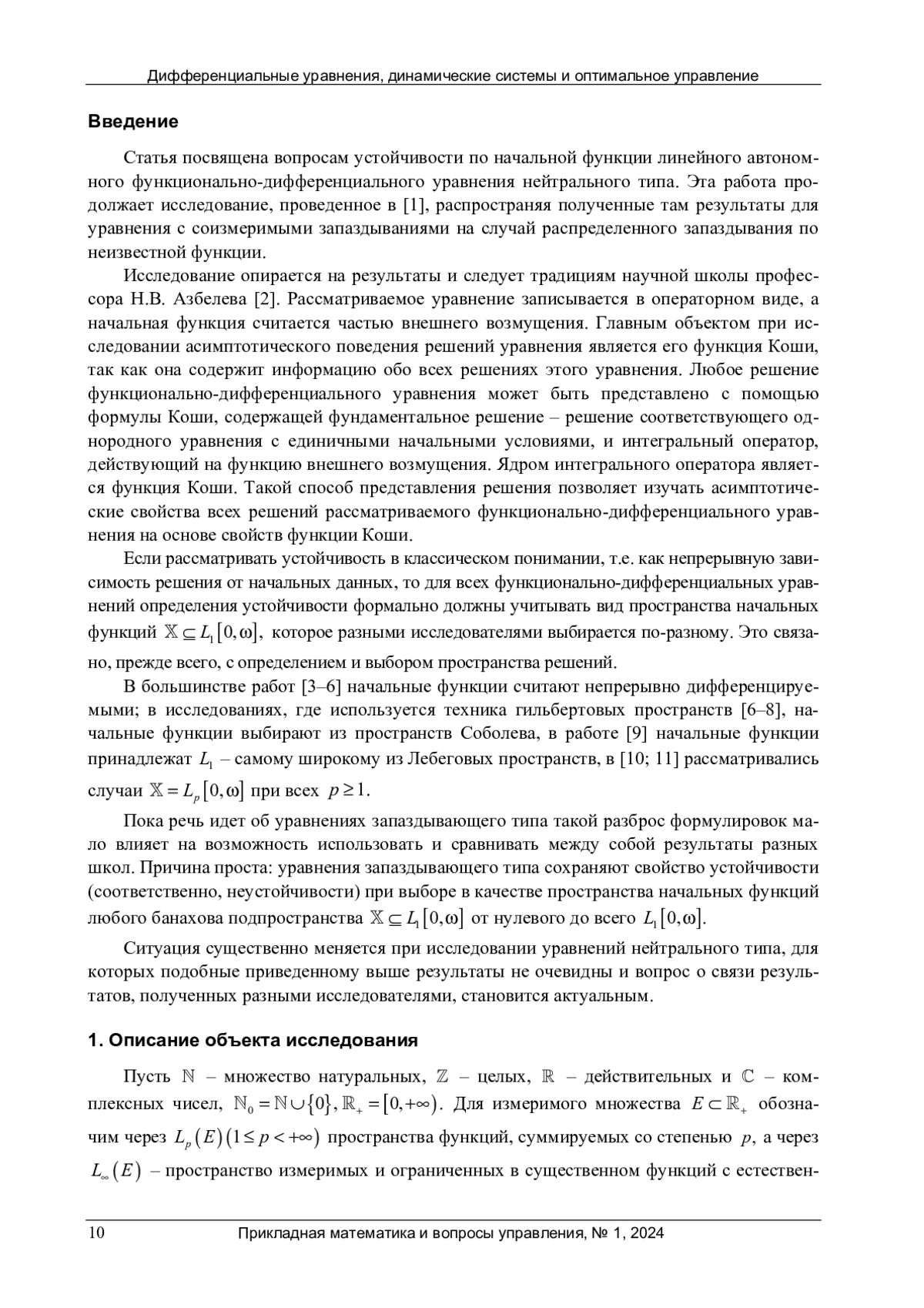 1. Малыгина, В.В. Об асимптотических свойствах функции Коши автономного функционально-дифференциального уравнения нейтрального типа / В.В. Малыгина, К.М. Чудинов // Прикладная математика и вопросы управления. - 2020. - № 3. EDN: BALLGT