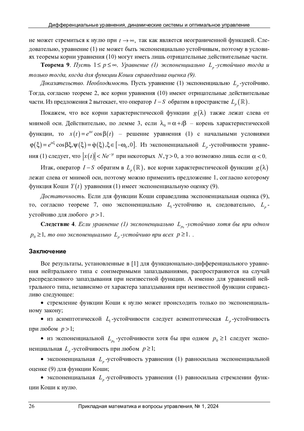 12. Баландин, А.С. Экспоненциальная устойчивость автономных дифференциальных уравнений нейтрального типа. I / А.С. Баландин // Известия вузов. Математика. - 2023. - № 3. EDN: USYUZO