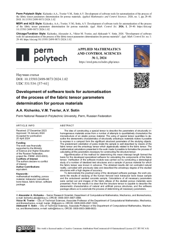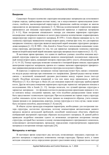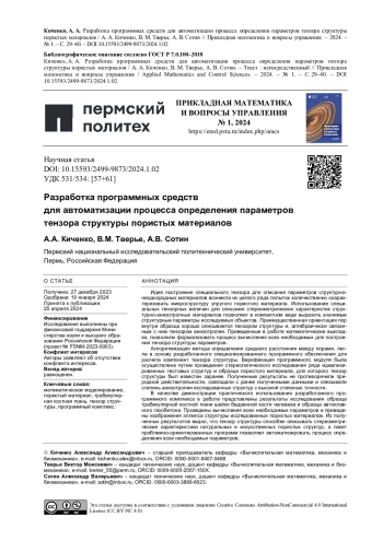 КИЧЕНКО А. А., ТВЕРЬЕ В. М., СОТИН А. В. РАЗРАБОТКА ПРОГРАММНЫХ СРЕДСТВ ДЛЯ АВТОМАТИЗАЦИИ ПРОЦЕССА ОПРЕДЕЛЕНИЯ ПАРАМЕТРОВ ТЕНЗОРА СТРУКТУРЫ ПОРИСТЫХ МАТЕРИАЛОВ // ПРИКЛАДНАЯ МАТЕМАТИКА И ВОПРОСЫ УПРАВЛЕНИЯ. 2024. № 1