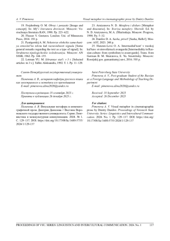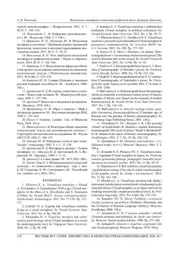 3. Панченко Д. В. Визуальные метафоры как вектор анализа поэтического текста // Волгоград. гос. мед. унт. 2020. № 2. С. 98-108.