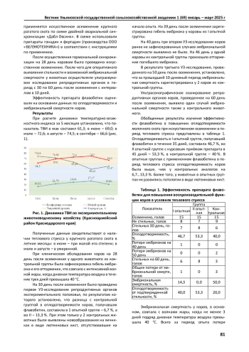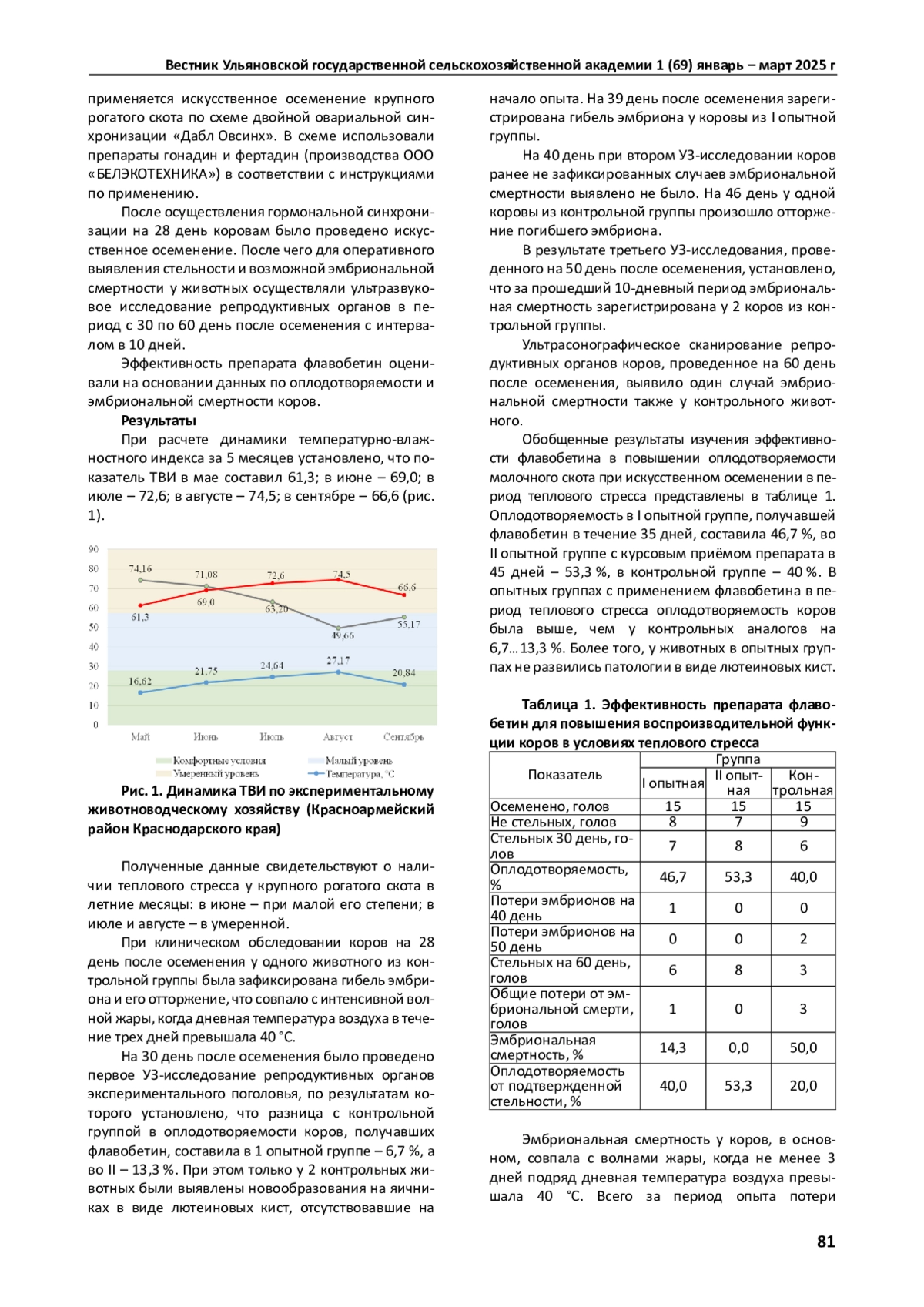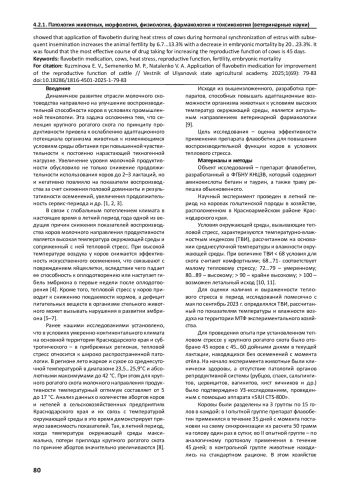 Ключевые фразы: препарат флавобетин, коровы, тепловой стресс, воспроизводительная функция, оплодотворяемость, эмбриональная смертность