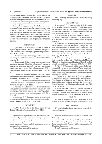 1. Артемова О. Г. «Партенисса» сэра Р. Бойла в зеркале маркемологии // Вестник Воронеж. гос. ун-та. Сер.: Лингвистика и межкультурная коммуникация. 2023. № 4. С. 74-82.