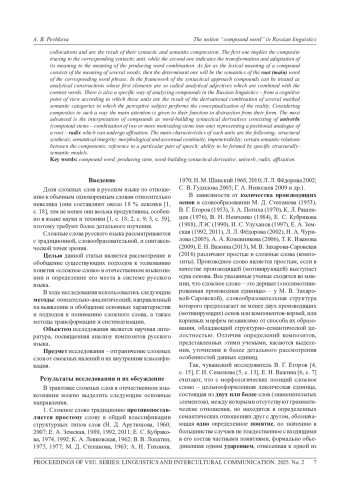 Статья посвящена анализу и обобщению существующих подходов к толкованию понятия «сложное слово» в отечественном языкознании. Эти единицы рассматриваются с словообразовательной и синтаксической точек зрения. Согласно первой, традиционной трактовке, сложное слово считается дериватом, словообразовательная структура которого состоит из двух и более производящих основ, или компонентов-корней, или корневых морфем и обладает структурно-семантической целостностью. Согласно второй - сложные слова восходят к словосочетаниям и являются результатом их синтаксической и семантической компрессии. Первая заключается в его возведении к соответствующей синтаксической единице, в то время как вторая свидетельствует о преобразовании и адаптации его смысла смыслу производящего словосочетания. Поскольку лексическое значение композита состоит из значения нескольких слов, то определяющей является семантика главного (стержневого) слова соответствующего словосочетания. В рамках синтаксического подхода сложные слова могут приравниваться к аналитическим конструкциям, первыми элементами которых являются так называемые аналитические прилагательные, соединяющиеся со знаменательными словами. В языкознании существует особый ракурс рассмотрения сложных слов - с когнитивной точки зрения, согласно которой эти единицы являются результатом деривационного объединения нескольких маркированных семантических категорий, в которых познающий субъект осуществляет концептуализацию действительности. При таком рассмотрении основное внимание уделяется функции в отвлечении от формы. Наиболее перспективна трактовка сложных слов как словообразовательно-синтаксических дериватов, состоящих из универбов (сложных основ - соединение двух и более мотивирующих основ в одну), представляющих собой позиционный аналог корня - радикс, который может подвергаться аффиксации. Основными характеристиками таких единиц являются: структурный синтез; семантическая целостность; морфологическая и акцентная цельно-оформленность; непроницаемость; определенные смысловые отношения между компонентами; отнесенность к той или иной части речи; способность образования по определенным структурно-семантическим моделям.