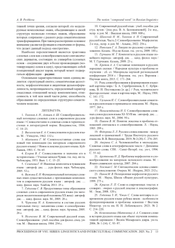 19. Федорова Л. Л. Русское словосложение: между лексикой и грамматикой // Труды Института русского языка им. В. В. Виноградова. 2019. № 2 (20). С. 276-285. EDN: YOBAVE