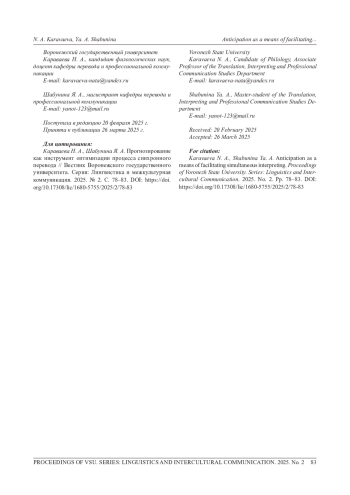 4. Андреева В. Н. Психолингвистические модели функционирования памяти при синхронном переводе // Вестник Рос. гос. ун-та им. И. Канта. 2007. № 2. С. 16-21.