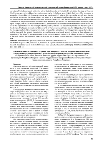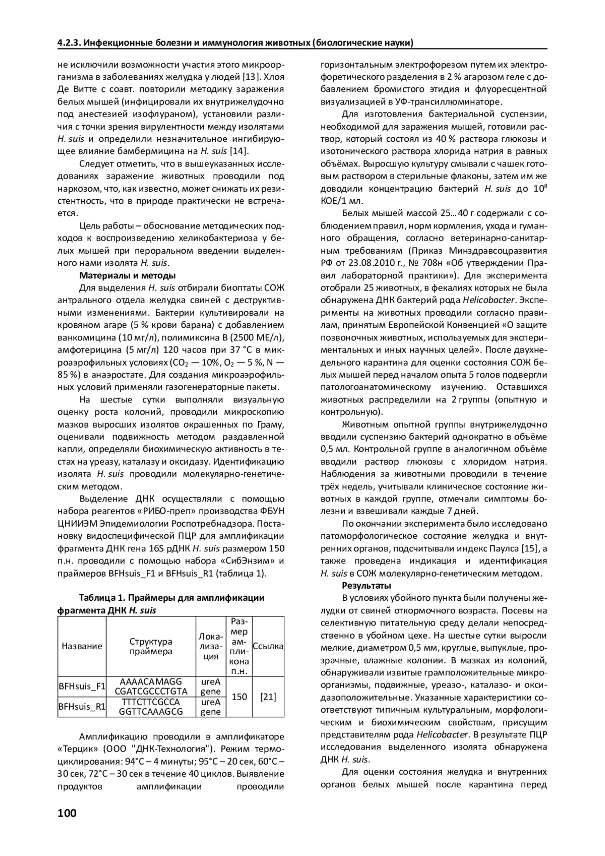 13. Flahou, B. Helicobacter suis causes severe gastric pathology in mouse and mongolian gerbil models of human gastric disease // PLoS One. 2010. Vol. 5. No. 11. P. e14083. EDN: MPFLOE