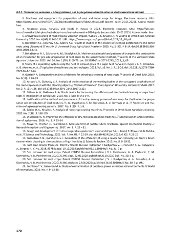 5. Сабиев У. К., Хузин И. Р. Безводная очистка корнеклубнеплодов вибрационным воздействием /// Вестник Омского государственного аграрного университета. 2020. № 4 (40). С. 146-151. URL: https://www.omgau.ru/up-load/iblock/b27/19_40.pdf. EDN: TPZTFP