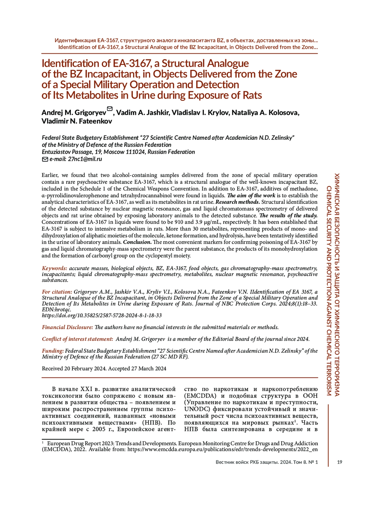 17. Заикина ОЛ, Шилов ВВ, Лодягин АН, Глушков СИ, Григорьев АМ. Установление структур свободных и глюкуронидированных метаболитов α-пирролидиновалерофенона в моче человека методом жидкостной хромато масс спектрометрии при измерении точных масс. Журн аналит химии. 2019;74(5):381-96. https://doi.org/10.1134/S0044450219020130