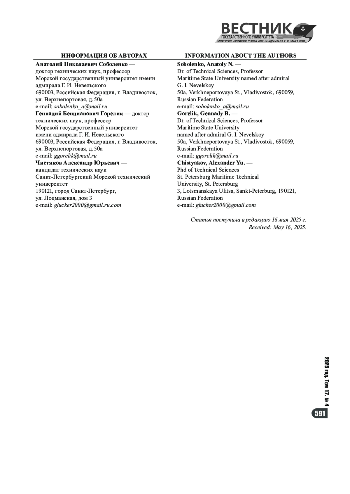 Темой работы является исследование вопросов длительности безаварийной эксплуатации танкеров типа «Волгонефть» проекта № 1577 при условии качественного ремонта и модернизации. Актуальность работы обусловлена произошедшей 15 декабря 2024 г. аварией в Керченском проливе, где два судна проекта («Волгонефть-212» и «Волгонефть-239») потерпели крушение, вызвав экологическую катастрофу из-за выброса мазута. Рассмотрены возможные причины аварии, включая несоблюдение требований Российского классификационного общества, перегруз, отсутствие качественного ремонт корпусов. Выполнен анализ гипотезы о том, что надежность эксплуатации судов определяется не их возрастом, а техническим состоянием, которое в свою очередь обеспечивается судовладельцем через регулярные освидетельствования в совокупности с качественным ремонтом корпуса. Представлены результаты прочностных расчетов корпусов танкеров, выполненных в 2019–2024 гг., и данные о модернизации, включающей замену конструкций на сталь повышенной прочности (РС D32 с пределом текучести 315 МПа), подъем второго дна и перенос переборок в грузовой зоне в соответствии с требованиями МАКО. Рассмотрены особенности конструкции судов, их классификационные ограничения и влияние остаточных деформаций, таких как общий остаточный перегиб, на вероятность перелома корпуса. Особое внимание уделено опасным сечениям в районе грузовых танков, где произошли переломы у потерпевших крушение судов. Для повышения надежности предлагается усиление корпусов путем установки полос подкрепления на наиболее ослабленные связи (настил палубы или обшивку днища), что является экономически эффективным решением. Сделан вывод о том, что при соблюдении требований Российского классификационного общества в части регулярного контроля технического состояния и индивидуального подхода к ремонту танкеры «Волгонефть» могут продолжать безопасную и эффективную эксплуатацию несмотря на возраст, составляющий в среднем 48 лет в 2025 г. Результаты расчетов показывают, что модернизированные танкеры обладают достаточным запасом прочности для безопасной эксплуатации в рамках классов РКО («ХМ-ПР 2,5» или «ХМ–СП 3,5»).