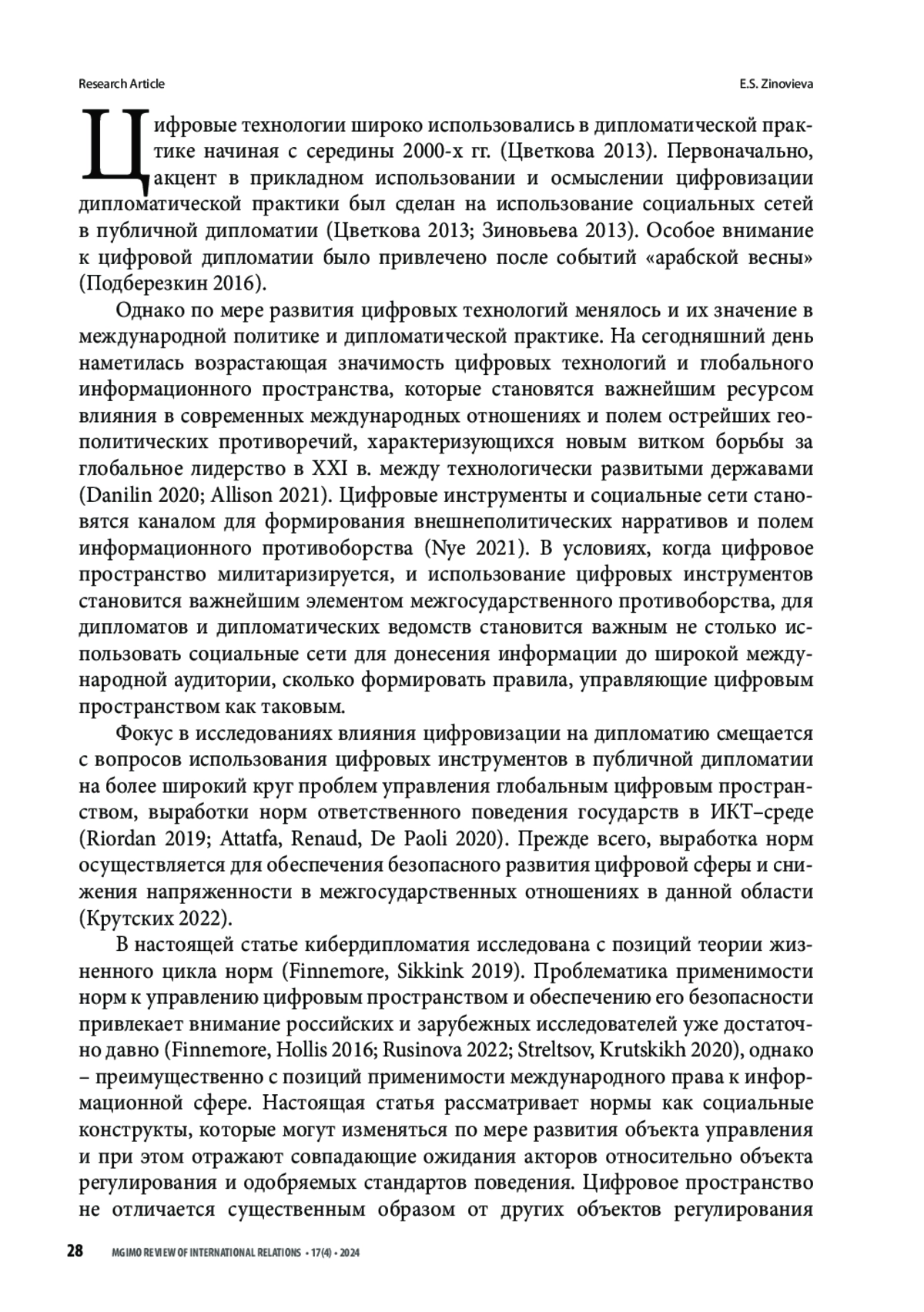 7. Зиновьева Е. С. 2013. Цифровая дипломатия США: возможности и угрозы для международной безопасности. Индекс безопасности. Т. 19. No. 1. С. 213-228.