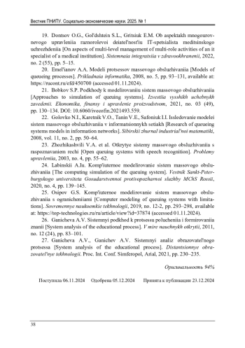 Разработка и внедрение диалоговых систем в социально-экономическую жизнь общества является важной и особенно актуальной проблемой в условиях цифровизации производства продукции и общественных отношений. Для решения данной проблемы разрабатываются различные математические модели диалога. Это прежде всего многоагентные системы, основанные на нейронных сетях, генетических алгоритмах и других методах искусственного интеллекта. Однако результаты работы даже простейших «вопросно-ответных» систем не всегда удовлетворяют пользователей, и для разрешения ситуации приходится привлекать человека-оператора. Одним из направлений повышения эффективности диалоговых систем является применение для их построения совокупности различных математических методов и моделей. Большую эффективность при обработке информации показали методы теории массового обслуживания. Целью данной статьи является моделирование процесса диалога как системы массового обслуживания. Разработана схема диалога индивидуумов (людей или интеллектуальных агентов). Описаны потоки информации между участниками диалога. Эти потоки приняты пуассоновскими. Рассматриваемая система относительно участников диалога описана системой дифференциальных уравнений Колмогорова. Получено решение данной системы, которое можно рассматривать как дифференциальную модель диалога. Рассмотрена формализованная математически модель диалога в установившемся режиме (при достаточно большом времени наблюдений). Этот случай наиболее характерен для анализа текстовых сообщений. Для пояснения разработанного метода рассмотрен числовой пример. Разработанная в статье модель может найти практическое применение для оценки состояний системы диалога, а также в качестве дополнительного инструмента к разрабатываемым диалоговым системам на основе методов искусственного интеллекта.