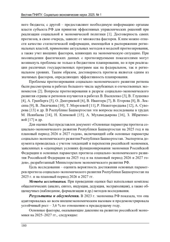 Введение. Прогнозные параметры социально-экономического развития региона, с одной стороны, являются основой для разработки проекта регионального бюджета; с другой – предоставляют необходимую информацию органам власти субъекта РФ для принятия эффективных управленческих решений при реализации социальной и экономической политики [1]. Достоверность самих прогнозов, в свою очередь, зависит от множества факторов. К ним можно отнести качество статистической информации, имеющейся в распоряжении региональных властей, применение актуальных методов и моделей прогнозирования, а также учет внешних факторов, влияющих на экономическую ситуацию. При несовпадении фактических данных с прогнозируемыми показателями могут возникнуть проблемы не только в бюджетном планировании, но и при реализации различных государственных программ как на федеральном, так и региональном уровнях. Таким образом, достоверность прогноза является одним из значимых факторов, определяющих эффективность планирования