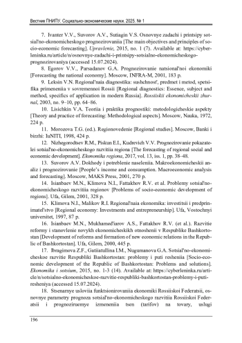 1. Нестерова, Н.Н. Особенности планирования и прогнозирования социально-экономического развития регионов в условиях глобальных изменений [Электронный ресурс] / Н.Н. Нестерова, И.В. Осипова // Современные проблемы науки и образования. - 2014. - № 4. - URL: https://science-education.ru/ru/article/view?id=13428 (дата обращения: 12.07.2024). EDN: STRPTV