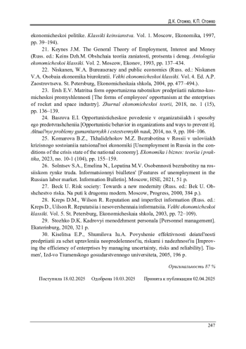 23. Ерш, Е.В. Матрица форм оппортунизма работников предприятий ракетно-космической промышленности / Е.В. Ерш // Журнал экономической теории. - 2018. - № 1 (15). - С. 136-139. EDN: YTMUVI
