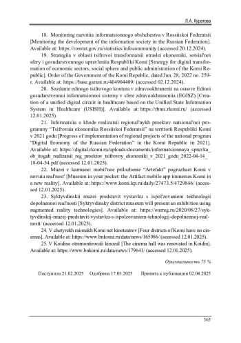 19. Стратегия в области цифровой трансформации отраслей экономики, социальной сферы и государственного управления Республики Коми [Электронный ресурс]: Распоряжение Правительства Республики Коми от 28 июня 2022 г. № 259-р. - URL: https://base.garant.ru/404904409/(дата обращения: 02.12.2024).