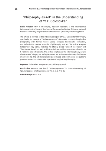 МОРОЗОВ Д. «ФИЛОСОФИЯ-КАК-ИСКУССТВО» В ПОНИМАНИИ Я. Э. ГОЛОСОВКЕРА // МЕТАМОРФОЗИС. 2025. ТОМ 9, № 3