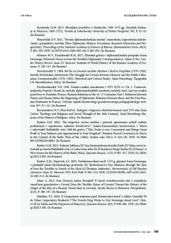 44. Рябов С.М., Попович А.И. 2023. Варфоломеевская ночь 1572 г. глазами Ивана Грозного: в поисках идеала христианского правления. Герменевтика древнерусской литературы. Сб. 22. Москва: ИМЛИ РАН. С. 492-514.