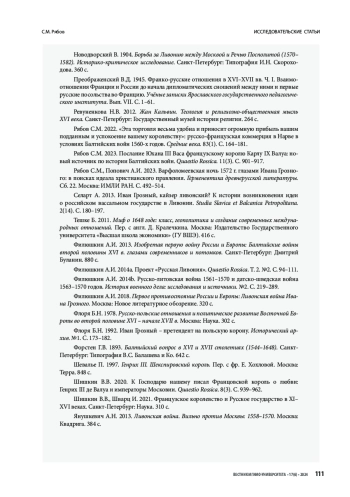 42. Рябов С.М. 2022. «Эта торговля весьма удобна и приносит огромную прибыль вашим подданным и успокоение вашему королевству»: русско-французская коммерция в Нарве в условиях Балтийских войн 1560-х годов. Средние века. 83(1). С. 164-181.