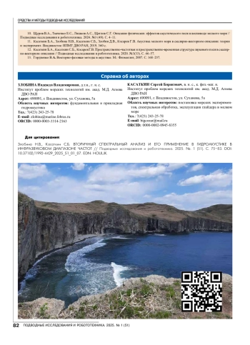 ЗЛОБИНА Н. В., КАСАТКИН С. Б. ВТОРИЧНЫЙ СПЕКТРАЛЬНЫЙ АНАЛИЗ И ЕГО ПРИМЕНЕНИЕ В ГИДРОАКУСТИКЕ В ИНФРАЗВУКОВОМ ДИАПАЗОНЕ ЧАСТОТ // ПОДВОДНЫЕ ИССЛЕДОВАНИЯ И РОБОТОТЕХНИКА. 2025. № 1 (51)