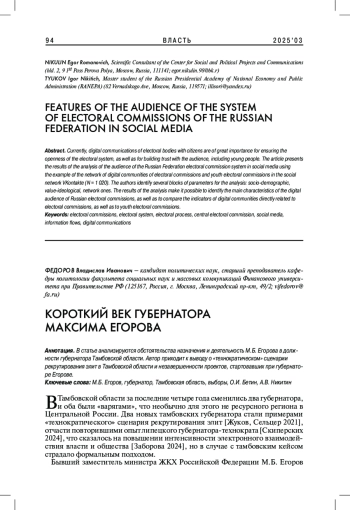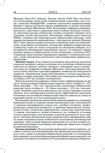Статья: ОСОБЕННОСТИ АУДИТОРИИ СИСТЕМЫ ИЗБИРАТЕЛЬНЫХ КОМИССИЙ РОССИЙСКОЙ ФЕДЕРАЦИИ В СОЦИАЛЬНЫХ МЕДИА (2025)