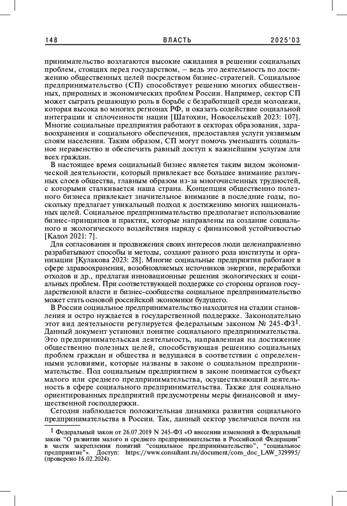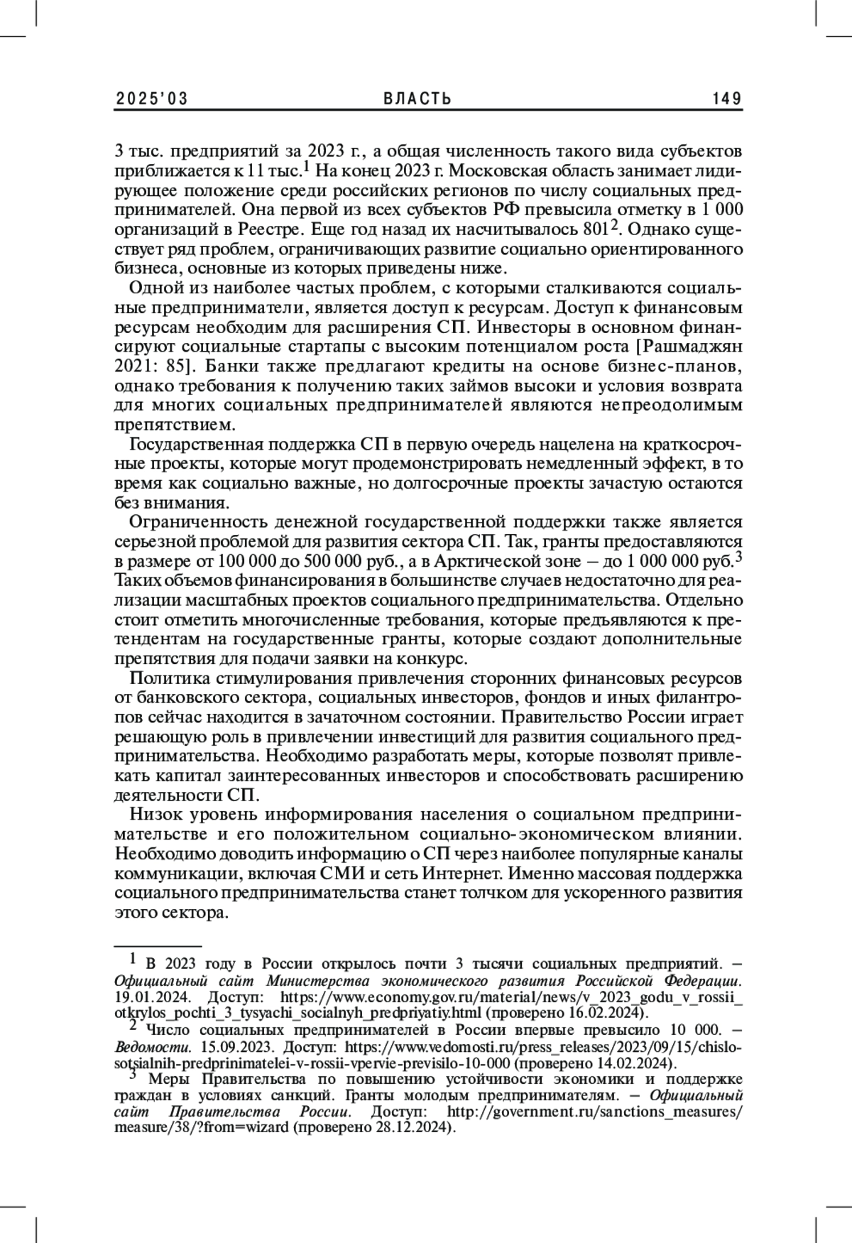 2. Качко Д.С. 2017. Социальное предпринимательство: проблемы и перспективы развития в России. - Российское предпринимательство. Т. 18. № 3. С. 215-221. EDN: YGAGUD
