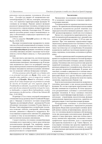 13. Разворотнева И. Н. Прецедентные топонимы в испанских СМИ (на материале заголовочных комплексов) // Язык, коммуникация и социальная среда. Воронеж, 2023. Вып. 21. С. 125-132.