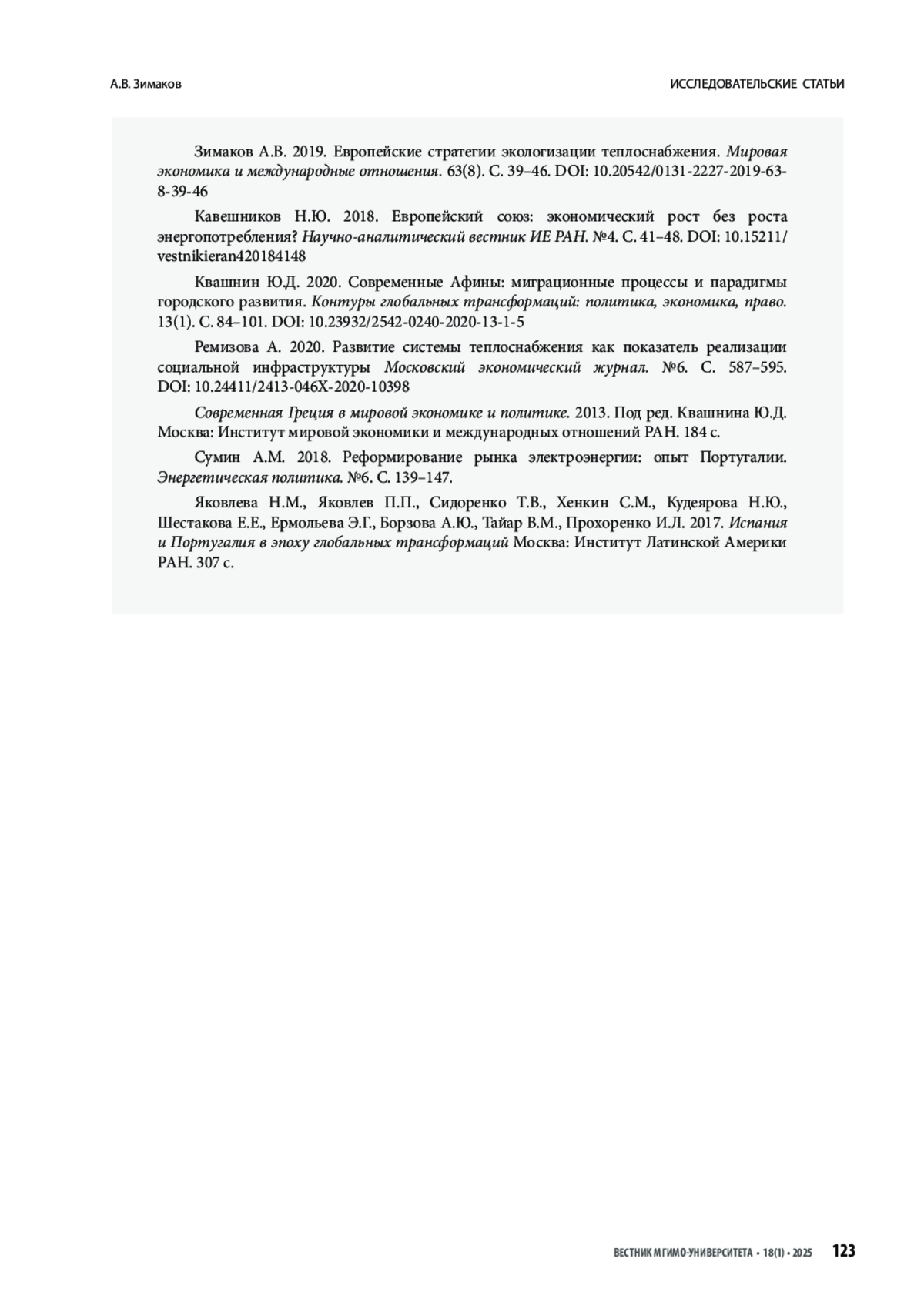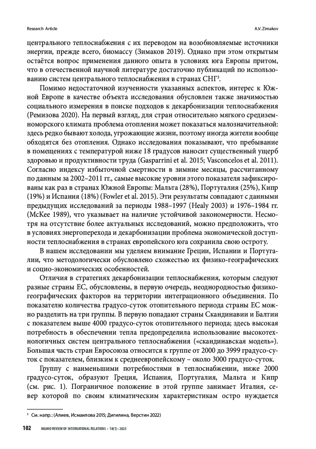 ЗИМАКОВ А. В. ДЕКАРБОНИЗАЦИЯ ТЕПЛОСНАБЖЕНИЯ В ЮЖНОЙ ЕВРОПЕ: СТРАТЕГИЯ, ВЫЗОВЫ И СОЦИАЛЬНЫЕ ПОСЛЕДСТВИЯ // ВЕСТНИК МГИМО-УНИВЕРСИТЕТА. 2025. ТОМ 18, № 1