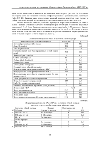 Обсуждаются результаты археозоологических исследований культурного слоя г. Екатеринбурга на участке, примыкающем к современному Мытному двору. Материалы работы характеризуют период со второй половины XVIII до конца XIX в. Для исследования костей домашнего скота, которые составляют основу коллекции, были применены общепринятые археозоологические методики. Результаты исследования демонстрируют, что анализируемые материалы с большой степенью вероятности являются отражением обширных поставок скота из степных районов для мясной торговли Екатеринбурга и отходами от ее функционирования. Говядина являлась основным видом мяса, которое потреблялось горожанами. Анализ биологических параметров скота показывает, что на мясной рынок города поступал в основном взрослый и старый скот. В продажу поступало мясо коров, быков и волов. Кости волов являются основным компонентом комплекса костей крупного рогатого скота, у которого возможно провести подобное определение. Большинство изменений на костях животных абсолютно типичны для домашнего скота и имеют возрастной характер. Не исключено, что некоторые кости быков и волов могут происходить от рабочих животных. Находка костяного конька и другие костяные предметы в совокупности с отсутствием традиционных для городов Урала бабок могут отражать более высокий статус людей, проживавших в этой части города. Характерными чертами археозоологических коллекций торговых зон городов Урала и Сибири XVIII-XIX вв. могут быть высокие показатели неопределимых костей, фрагментов стенок трубчатых костей и рогов скота