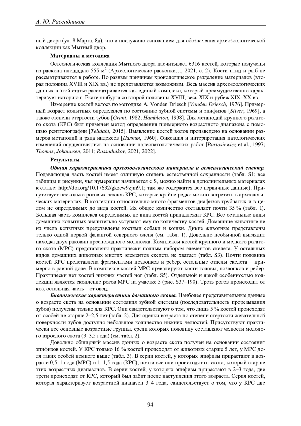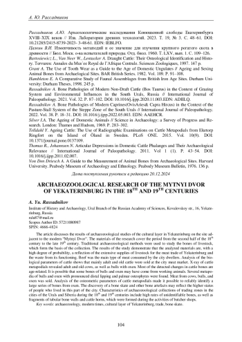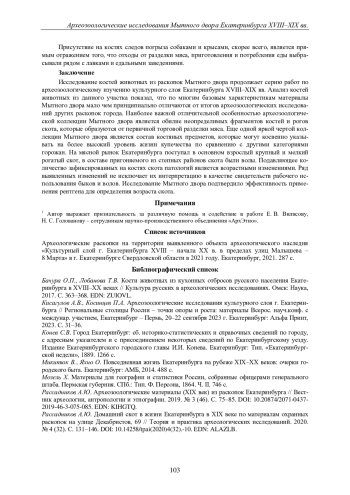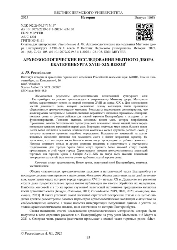 РАССАДНИКОВ А. Ю. АРХЕОЗООЛОГИЧЕСКИЕ ИССЛЕДОВАНИЯ МЫТНОГО ДВОРА ЕКАТЕРИНБУРГА XVIII-XIX ВЕКОВ // ВЕСТНИК ПЕРМСКОГО УНИВЕРСИТЕТА. ИСТОРИЯ. 2025. № 1 (68)